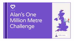 To put that distance into context, 1 million metres is roughly the entire length of the UK, from the north coast of Scotland to the south coast of England. Alan’s progress will be visualised as a journey across the country, making each kilometre tangible and shareable as the year unfolds.